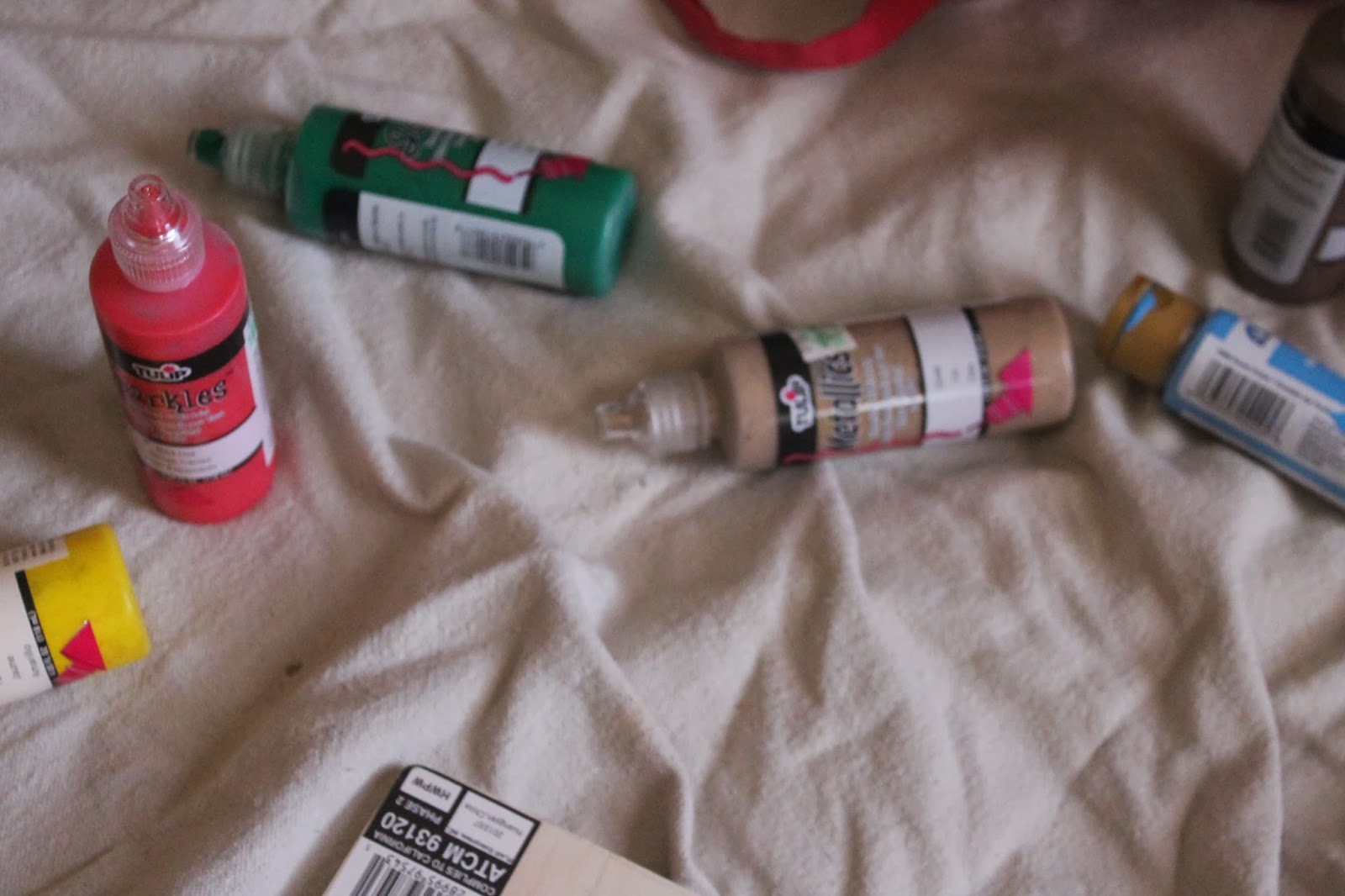 Ok, this project is a breeze. I simply wanted to give some cheapie lamps I purchased from Lowes a pop of color. I absolutely LOVE pops of color in a home that is mostly monochromatic (Using the tints and shades of one color within a hue..basically: a color scheme of browns, dark chocolates, creams, whites), it always gives a pleasant aura of surprise. And because I am a rustic chic type of chic and love colors that are